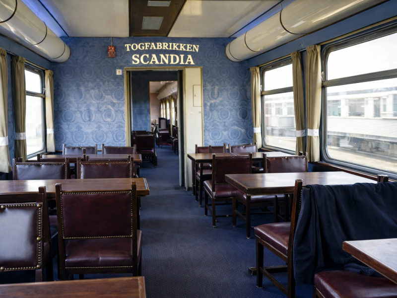 Efter foredraget går vi ned til den nye togvognscafé (Scandia Expressen) . Her venter en flot, restaureret togvogn – vi hører om tilblivelsen af Scandia Ekspressen og nyder noget lækkert til ganen.