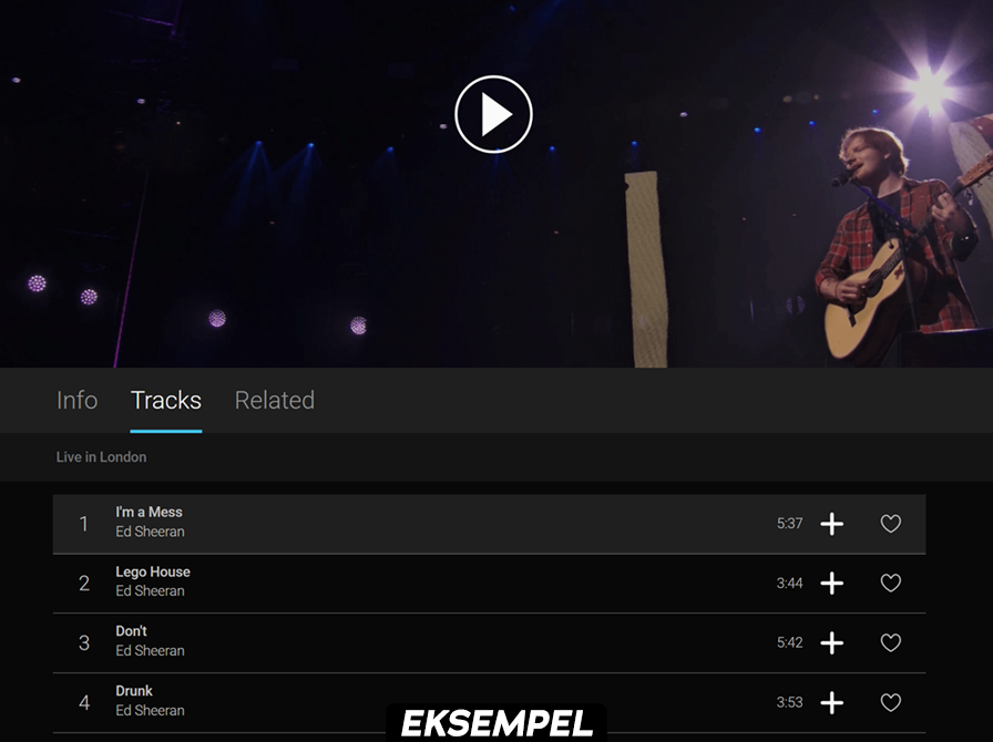 Specifikke numre fra livekoncerterne ligger som tracks, så de kan udvælges individuelt.